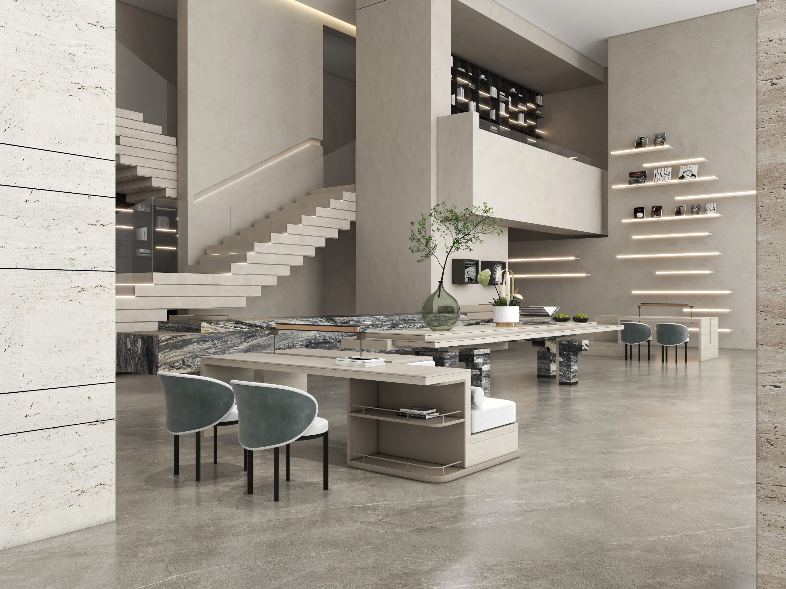 Nepheline sở hữu gam xám xi măng trung tính với hiệu ứng vân đá tự nhiên trải đều, xen kẽ những đường vân trắng mảnh tạo chiều sâu và cảm giác chân thực. Bề mặt mang sắc thái hiện đại, thanh lịch, phù hợp cho cả phong cách tối giản lẫn công nghiệp. Màu xám trung tính giúp dễ dàng phối hợp với nhiều tông màu nội thất khác nhau, từ gỗ ấm áp đến kim loại lạnh, mang lại không gian sang trọng, bền vững theo thời gian. Đây là lựa chọn lý tưởng cho phòng khách, sảnh, quán cà phê hoặc các khu vực thương mại cao cấp.